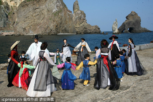 韓國模特獨(dú)島上秀服裝 旨在宣示“主權(quán)”