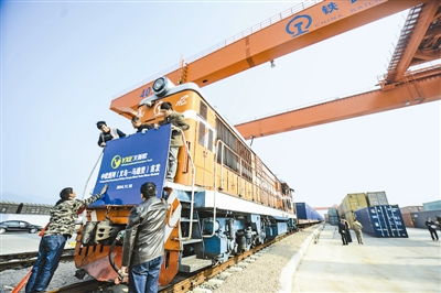 當(dāng)日,運(yùn)載著82個(gè)標(biāo)箱出口小商品的首趟“義(義烏)新(新疆)歐(歐洲)”班列從浙江省義烏市鳴笛開(kāi)行,奔向13052公里之遙的西班牙馬德里市。這意味著中國(guó)義烏至西班牙馬德里的“義新歐”鐵路國(guó)際貨運(yùn)班列正式開(kāi)行。