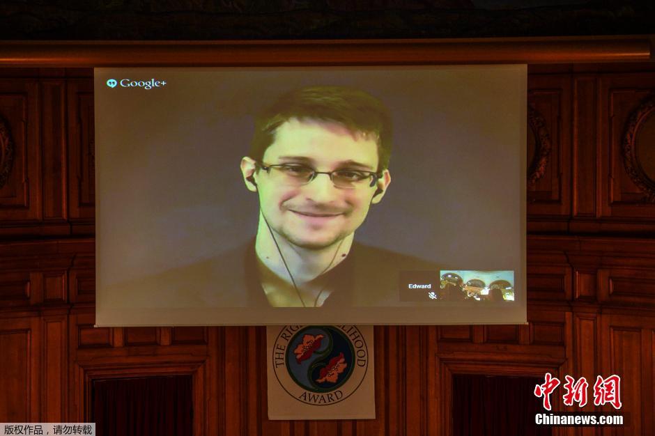 當(dāng)?shù)貢r(shí)間12月1日,瑞典斯德哥爾摩,前美國(guó)安全員斯諾登通過(guò)網(wǎng)絡(luò)領(lǐng)取了有“諾貝爾替代獎(jiǎng)”之稱(chēng)的2014年瑞典“正確生活方式獎(jiǎng)”。此獎(jiǎng)項(xiàng)為了表彰他“表現(xiàn)出勇氣和智慧,揭露了空前的侵犯基本民主程序和憲法人權(quán)的大規(guī)模國(guó)家監(jiān)控計(jì)劃”。