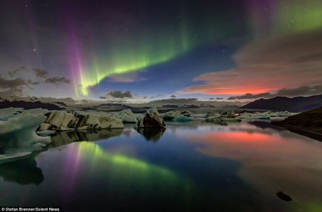攝影師拍攝極光遇火山噴發(fā)罕見奇觀
