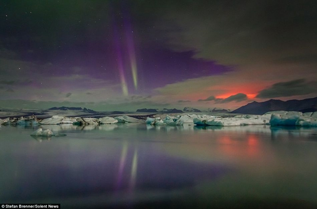 攝影師拍攝極光遇火山噴發(fā)罕見奇觀