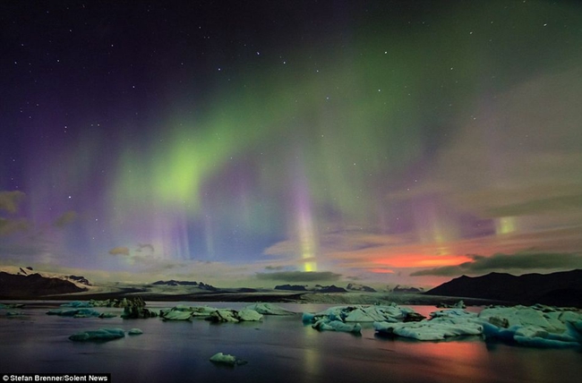 攝影師拍攝極光遇火山噴發(fā)罕見奇觀