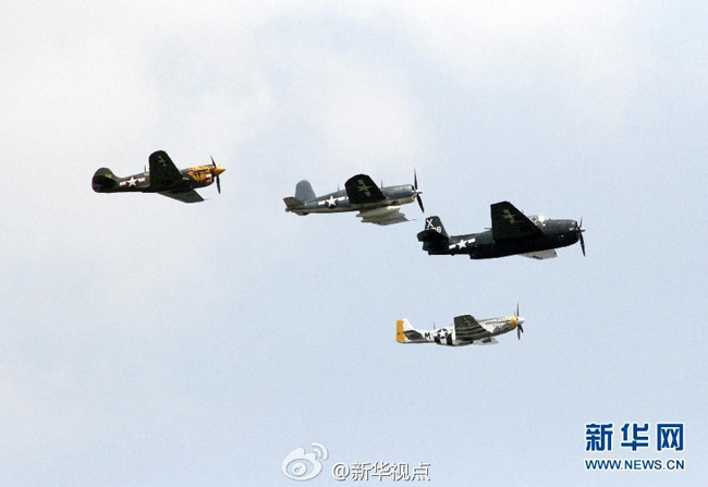 5月8日,幾架二戰(zhàn)時期的軍用飛機從美國首都華盛頓上空飛過。當(dāng)日是第二次世界大戰(zhàn)“歐洲勝利日”。華盛頓舉行老軍機飛行表演,數(shù)十架二戰(zhàn)時期的軍用飛機以約300米的高度自西向東飛過林肯紀(jì)念堂、華盛頓紀(jì)念碑和國會大廈,紀(jì)念二戰(zhàn)勝利70周年。記者 雷柏松攝