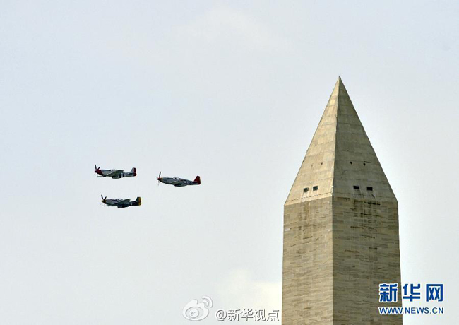 美國老軍機飛越華盛頓 紀(jì)念二戰(zhàn)勝利70周年