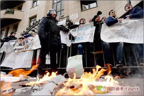 2015年11月25日,在俄羅斯莫斯科的土耳其駐俄羅斯大使館外,示威民眾游行抗議土耳其擊落俄羅斯戰(zhàn)機。