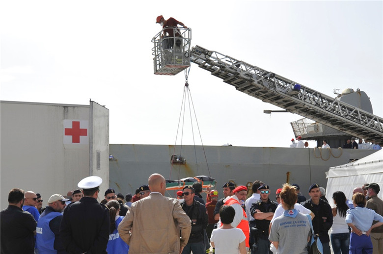 5月29日,在意大利雷焦卡拉布里亞,一艘載有600多名難民的意大利海軍艦船卸下一具難民的尸體。