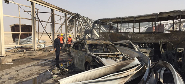 9月14日,人們在伊拉克南部濟加爾省首府納西里耶市西部法戴克地區(qū)查看爆炸現(xiàn)場。 新華社發(fā)