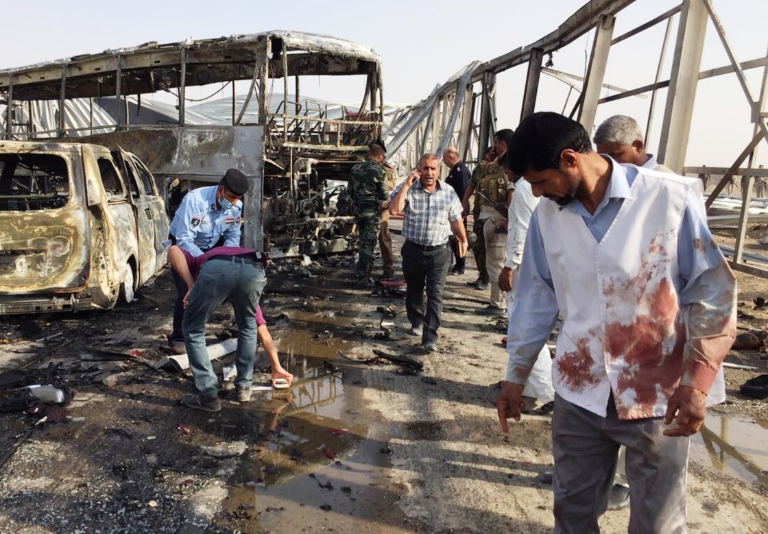 9月14日,人們?cè)谝晾四喜繚?jì)加爾省首府納西里耶市西部法戴克地區(qū)查看爆炸現(xiàn)場(chǎng)。 新華社發(fā)