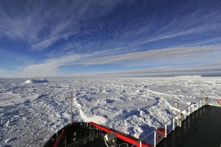 援救俄羅斯“紹卡利斯基院士”號(hào)52名被困人員后,“雪龍”號(hào)當(dāng)日在撤離這片密集浮冰區(qū)時(shí)受阻。新華社記者 張建松 攝