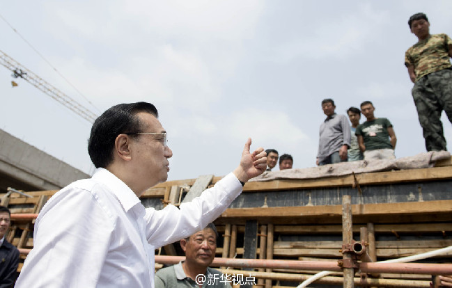 李克強在赤峰考察:走上腳手架與農(nóng)民工交談