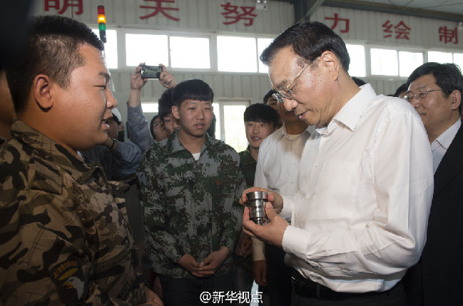 李克強(qiáng)在赤峰考察:走上腳手架與農(nóng)民工交談