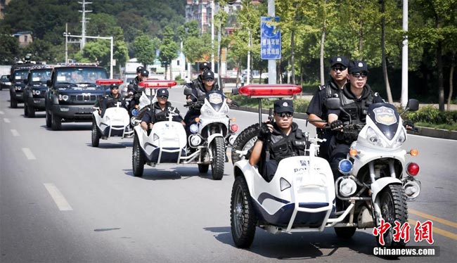 湖北黃石公安配發(fā)新裝備 加強(qiáng)城鐵公交站臺(tái)巡邏(圖)