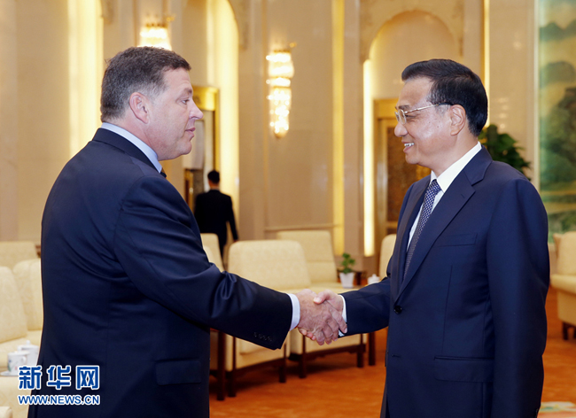 8月16日,國(guó)務(wù)院總理李克強(qiáng)在北京人民大會(huì)堂會(huì)見(jiàn)美國(guó)國(guó)會(huì)眾議員舒斯特率領(lǐng)的議員代表團(tuán),并同他們進(jìn)行對(duì)話交流。 新華社記者 鞠鵬 攝