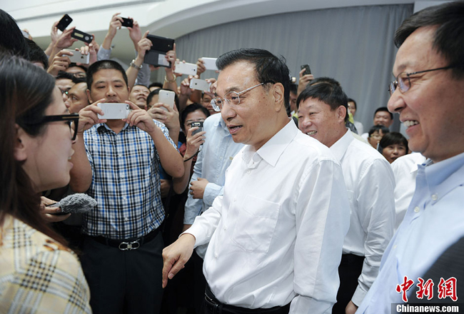 9月18日,國務(wù)院總理李克強(qiáng)在上海市委書記韓正、市長楊雄等陪同下,考察調(diào)研上海自貿(mào)區(qū)。中新社記者 劉震 攝