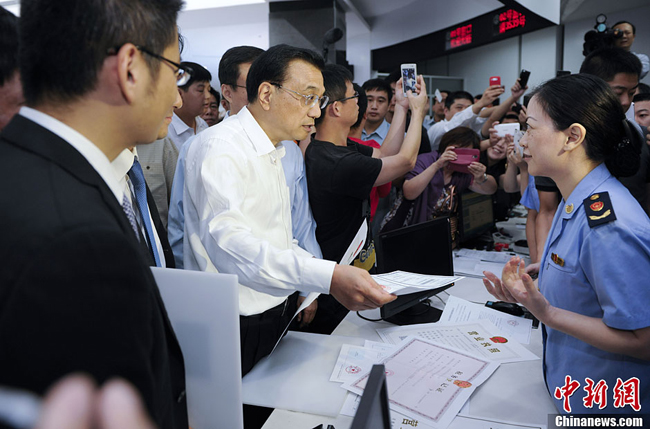 9月18日,國務院總理李克強在上海市委書記韓正、市長楊雄等陪同下,考察調(diào)研上海自貿(mào)區(qū)。中新社記者 劉震 攝