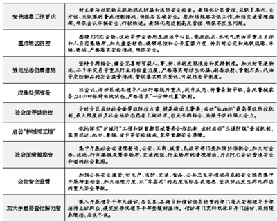 北京市委常委、政法委書記楊曉超在會上要求,APEC會議安保工作要確保實(shí)現(xiàn)“四個堅(jiān)決防止”的工作目標(biāo),即堅(jiān)決防止發(fā)生重大暴力恐怖事件、堅(jiān)決防止發(fā)生危害國家安全和社會穩(wěn)定的重大政治事件、堅(jiān)決防止發(fā)生重大群體性事件和個人極端暴力事件、堅(jiān)決防止發(fā)生重大公共安全事件,確保會議安全順利召開。