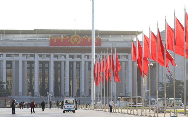 2014年10月27日,近日北京天安門廣場裝扮一新,迎接APEC會議的召開。