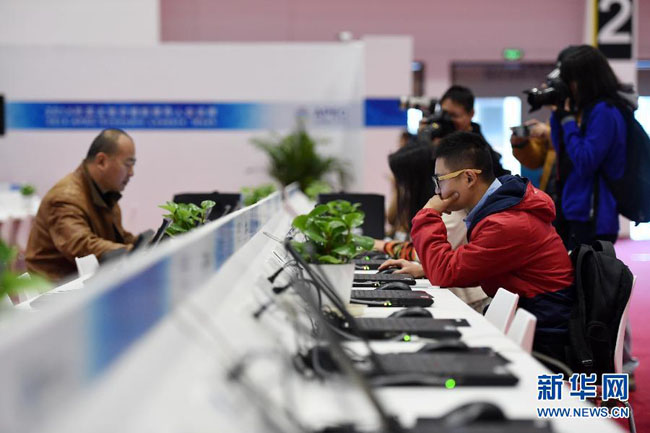 11月2日,記者在國家會議中心新聞中心體驗工作環(huán)境。新華社記者 陳曄華 攝