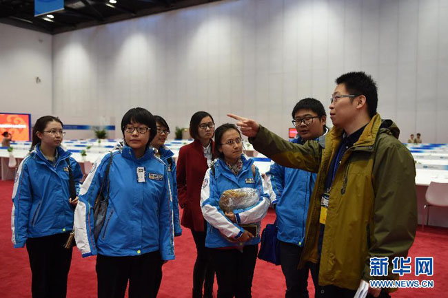 11月2日,志愿者在國(guó)家會(huì)議中心新聞中心內(nèi)熟悉情況。新華社記者 陳曄華 攝