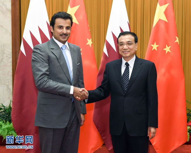 11月4日,國務(wù)院總理李克強在北京人民大會堂會見卡塔爾埃米爾塔米姆。 新華社記者 王曄 攝