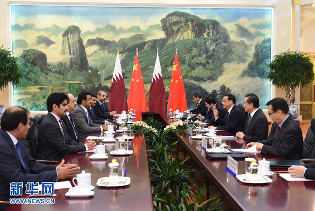 11月4日,國務(wù)院總理李克強(qiáng)在北京人民大會(huì)堂會(huì)見卡塔爾埃米爾塔米姆。 新華社記者 王曄 攝