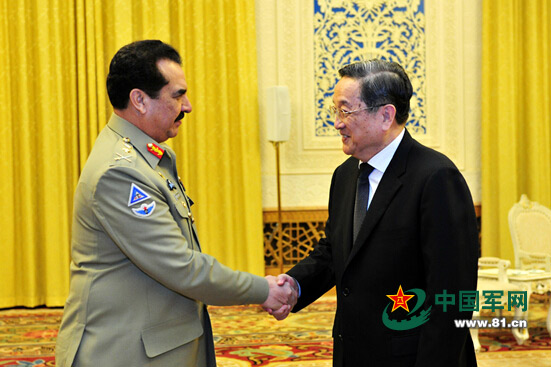 全國(guó)政協(xié)主席俞正聲26日下午在人民大會(huì)堂會(huì)見(jiàn)了來(lái)訪的巴基斯坦陸軍參謀長(zhǎng)拉希勒。