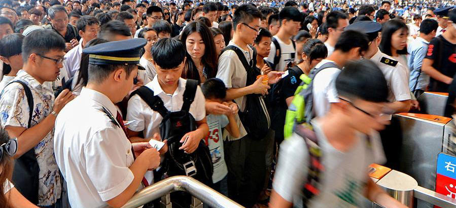 9月17日,旅客在河北省石家莊火車站檢票進站,該站預計當日將發(fā)送旅客13萬人次以上。當日是中秋節(jié)假期的最后一天,全國各地迎來返程客流高峰。 新華社記者 牟宇 攝
