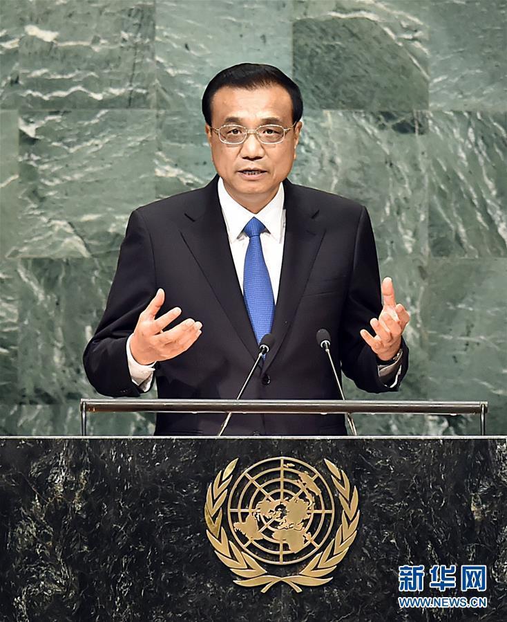 9月21日,國務院總理李克強在紐約聯(lián)合國總部出席第71屆聯(lián)合國大會以“可持續(xù)發(fā)展目標:共同努力改造我們的世界”為主題的一般性辯論并發(fā)表題為《攜手建設和平穩(wěn)定可持續(xù)發(fā)展的世界》的重要講話。新華社記者 李濤 攝