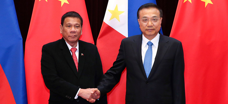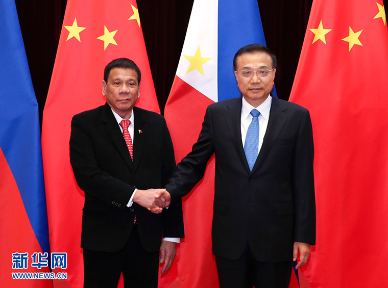 10月20日,國務(wù)院總理李克強在北京人民大會堂會見來華進行國事訪問的菲律賓總統(tǒng)杜特爾特。 新華社記者 龐興雷 攝