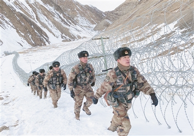 1月上旬,新疆軍區(qū)某邊防團(tuán)邁丹邊防連官兵,冒嚴(yán)寒、闖險(xiǎn)峰、翻石灘,前往海拔4000多米的某點(diǎn)位實(shí)施武裝巡邏,加大對(duì)高海拔防區(qū)的執(zhí)勤管控力度,確保邊境安全穩(wěn)定。 劉南松攝