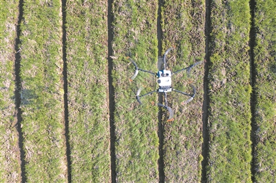 2月19日,在湖州市吳興區(qū)東林鎮(zhèn)保永村,90后新農(nóng)人尚年軍操作無人機按照預(yù)設(shè)的航線在麥田上進行噴藥作業(yè)。近年來,浙江省湖州市東林鎮(zhèn)結(jié)合全域土地綜合整治,推廣高科技、智能化農(nóng)業(yè)技術(shù),進一步提高糧食生產(chǎn)機械化和現(xiàn)代化水平。