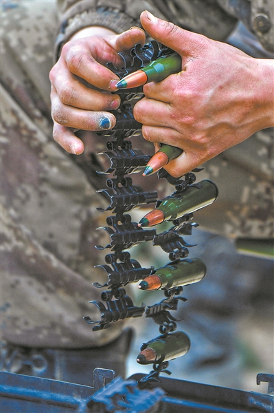 圖①:某旅組織射擊訓(xùn)練,一名士兵正在準(zhǔn)備彈藥。