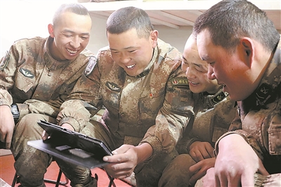 圖②:官兵在高原冬季駐訓期間利用平板電腦豐富業(yè)余文化生活。 王 斌攝