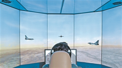 上圖:該旅飛行員利用模擬訓(xùn)練設(shè)備演練空中戰(zhàn)法。 王壹俊攝