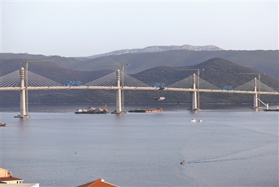 當(dāng)?shù)貢r(shí)間7月28日,隨著中國(guó)建設(shè)者用橋面吊機(jī)把最后一片重達(dá)220噸的鋼箱梁提升到位并完成焊接,中國(guó)企業(yè)承建的克羅地亞佩列沙茨跨海大橋成功合龍。佩列沙茨大橋是一座長(zhǎng)2440米、寬22.5米的公路斜拉橋,橫跨克羅地亞南部亞得里亞海的小斯通灣,連接該國(guó)大陸與佩列沙茨半島。