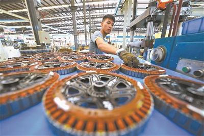 上圖:9月9日,在唐山市蘆臺經(jīng)濟開發(fā)區(qū)一家電機制造企業(yè),工人在生產(chǎn)線上工作。 新華社發(fā)