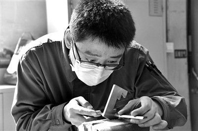 朱奎柱有一手絕活——為高難度零件做“整形手術(shù)”。他加工的零件,精度達(dá)到0.003毫米,相當(dāng)于頭發(fā)絲的1/20。這手絕活,讓他成為工廠鉗工領(lǐng)域的“大拿”。