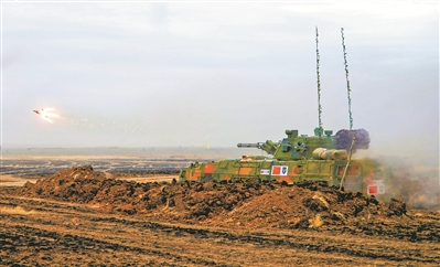 莽莽草原上,一輛輛步戰(zhàn)車、突擊車等輪式裝甲裝備組成的地面突擊隊(duì)雷霆出擊,相繼展開戰(zhàn)斗隊(duì)形向“敵”縱深發(fā)起猛烈攻勢(shì)。多國(guó)聯(lián)合部隊(duì)展現(xiàn)出強(qiáng)大的火力突擊力,使用空中和地面火力,對(duì)“恐怖武裝”實(shí)施多波次打擊。伴隨著一陣陣爆炸聲,“敵”陣地火光沖天,濃塵蔽日,一個(gè)個(gè)目標(biāo)灰飛煙滅……