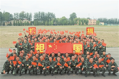 國慶節(jié)到來之際,武警北京總隊執(zhí)勤第四支隊新兵大隊開展“我和國旗合個影,我為祖國送祝?!被顒?,喜迎新中國72周年華誕。