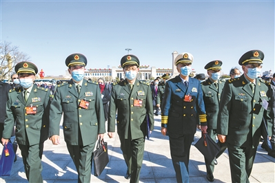 3月4日下午,全國政協(xié)十三屆五次會議在北京人民大會堂開幕。圖為軍隊政協(xié)委員滿懷信心步入會場。 本報記者 王 俊攝
