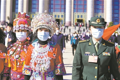 3月5日,十三屆全國人大五次會議在北京人民大會堂開幕。圖為開幕會后全國人大代表走出會場。 中國軍網記者 孫智英攝