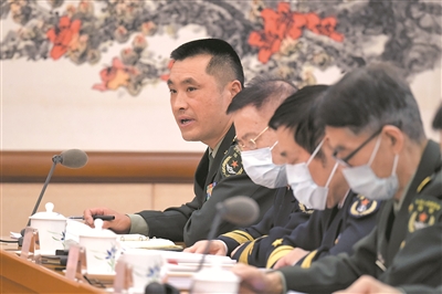 3月6日,解放軍和武警部隊代表團進行分組審議。圖為代表在參加審議時發(fā)言。