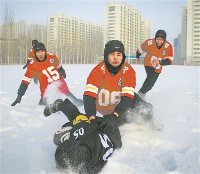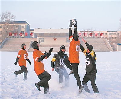 天山腳下,冰封雪裹。走進陸軍邊海防學院烏魯木齊校區(qū),一場別開生面的雪地橄欖球比賽正在緊張進行。學員們搶、扛、撞、頂、撲,讓寒冷的訓練場一派火熱。