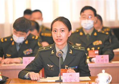 3月10日,解放軍和武警部隊代表團舉行小組會議。圖為軍隊人大代表程誠在小組會上發(fā)言。 本報記者 穆瑞林攝