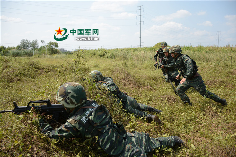 9月19日,武警安徽總隊(duì)滁州支隊(duì)特戰(zhàn)官兵正在利用地形地物開展戰(zhàn)術(shù)訓(xùn)練。
