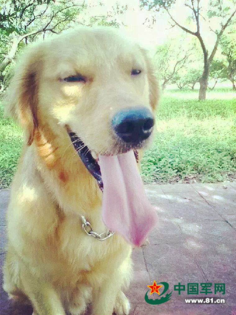 這條軍犬名叫金山,一條溫順的金毛犬,出生即被選定成為一名搜爆犬,5個月大開始接受培訓(xùn),1歲開始參加軍事訓(xùn)練,一生身披戎裝,與主人高涵形影不離。