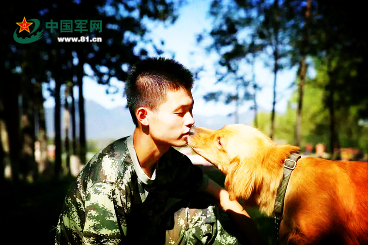 盛夏,剛剛下過暴雨的山里悶熱難耐,自然條件考驗(yàn)著軍犬與訓(xùn)犬員的生理極限。然而,本為搜爆犬的金山由于天生毛發(fā)比專業(yè)搜救犬的要長很多,且沒有經(jīng)過搜救訓(xùn)練,當(dāng)時(shí)情況緊急缺乏對(duì)金山爪子上的保護(hù)措施。進(jìn)山還不到10分鐘,金山就開始不停吐舌頭,發(fā)出粗重的呼吸聲。身旁的高涵心疼地將它背起來想為它降溫。就這樣,他倆背一會(huì)兒走一會(huì)兒,從白晝走到了黑夜,在一起執(zhí)行了將近8個(gè)小時(shí)的搜救任務(wù)后接到下山命令。