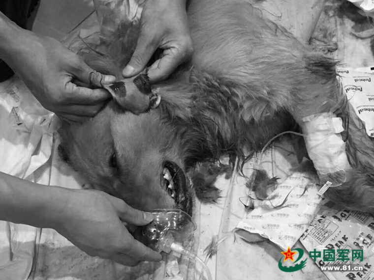百感交集的高涵,只好請(qǐng)戰(zhàn)友將精疲力竭的金山送回駐地,擦酒精散熱,喂“十滴水”解暑。已經(jīng)回到基地的訓(xùn)導(dǎo)員們團(tuán)團(tuán)圍住金山,希望它轉(zhuǎn)危為安。但金山卻開始出現(xiàn)走路搖晃、瞳孔發(fā)散的癥狀。不愿就此放棄的訓(xùn)導(dǎo)員們立即把它送到了寵物急救中心,剃毛、放血、打點(diǎn)滴……勇敢的金山也在同死神賽跑,期望等到高涵的出現(xiàn)??墒?,金山在稍微好轉(zhuǎn)的情況下病情急劇惡化。