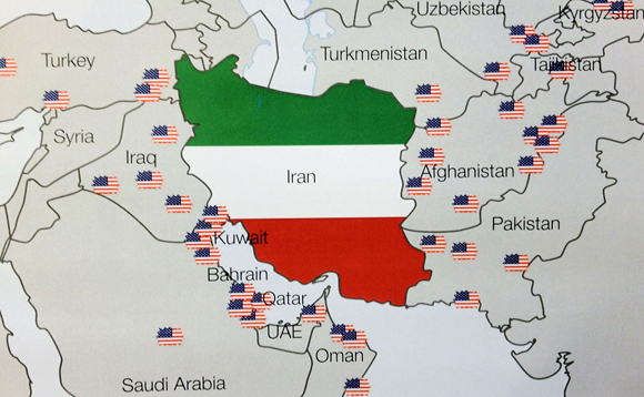 ??? 但是,美國的航母、驅(qū)逐艦和潛艇仍可在伊朗最先進系統(tǒng)掌控范圍之外有效活動,在伊朗飛機、潛艇和水面艦艇射程范圍之外將它們摧毀。美國遠程轟炸機以及帶燃油補給的短程飛機可攻擊伊朗目標,即使伊朗使用巡航導彈和彈道導彈對位于該地區(qū)的美軍基地造成嚴重破壞。圖為美軍在中東和中亞地區(qū)的軍事基地分布情況(注:美軍已于2011年底撤出位于巴基斯坦境內(nèi)的軍事基地),其實際上已將伊朗團團包圍。