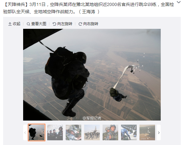 天降神兵:近2000名空降兵跳傘訓(xùn)練(圖)